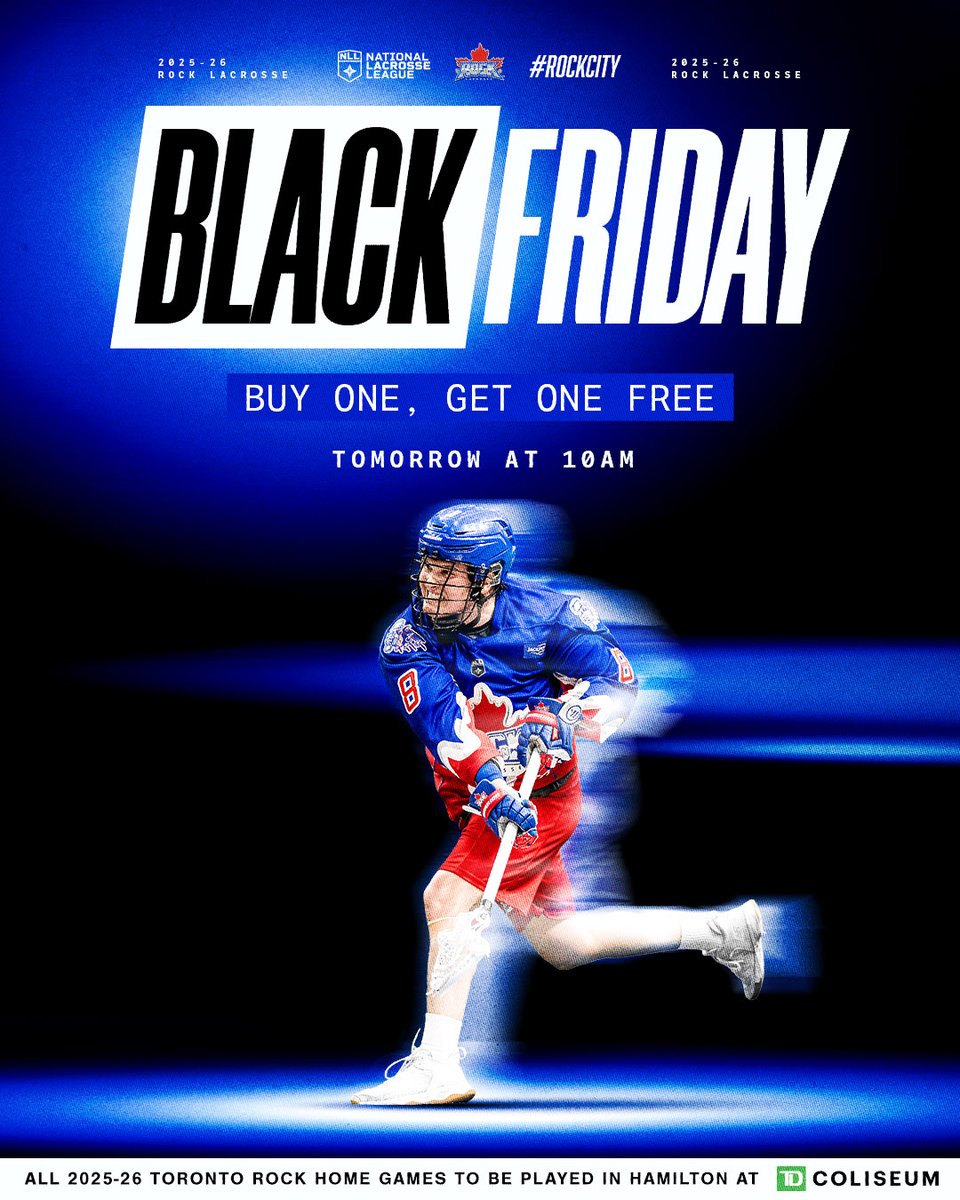 Tomorrow from 10am to 10pm, it's our #BlackFriday #BOGO! Buy one ticket to our Dec. 13th game or ...our Dec. 27th game, and get a second ticket to the same game FREE! Get the BOGO link here on our socials tomorrow OR by signing up for the Rock Insider: http://torontorock.com/rockinsider…
