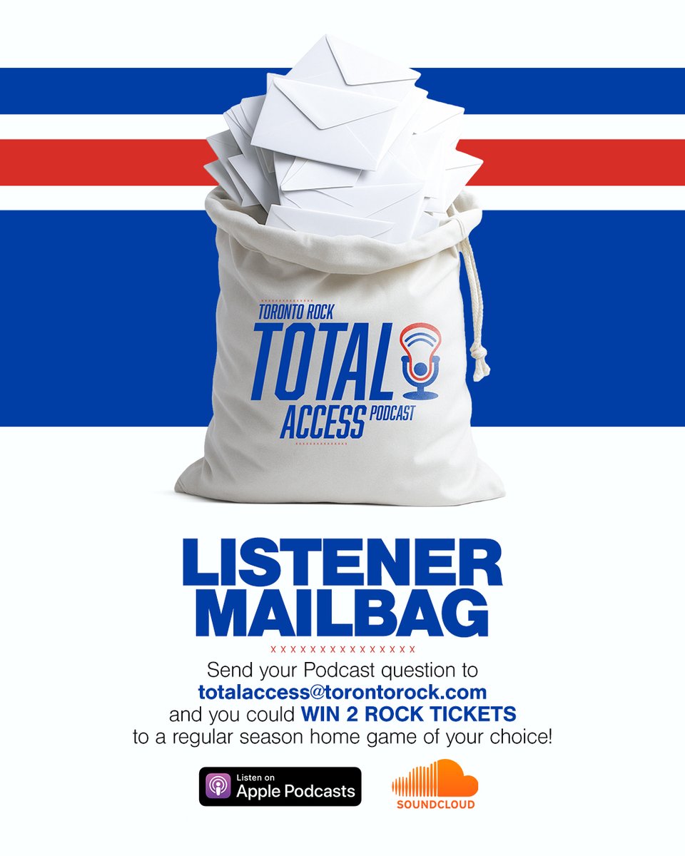 Send in a question ...for the Listener Mailbag segment on the Toronto Rock Total Access podcast and you could win Rock tickets if Challen Rogers selects your question as the best of the week!