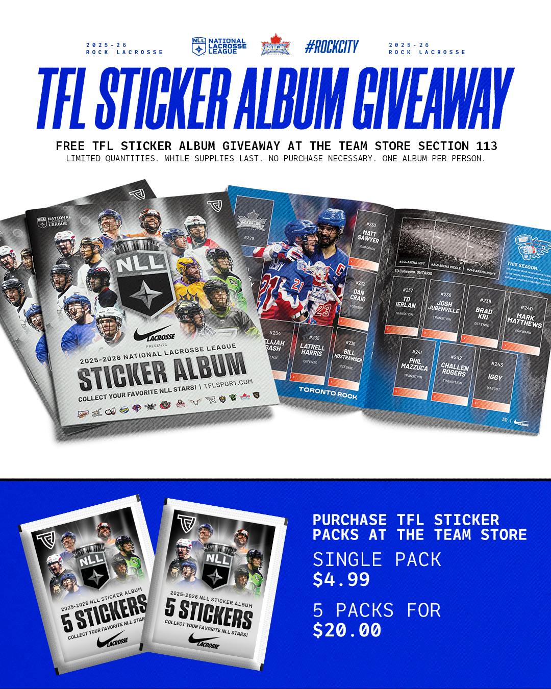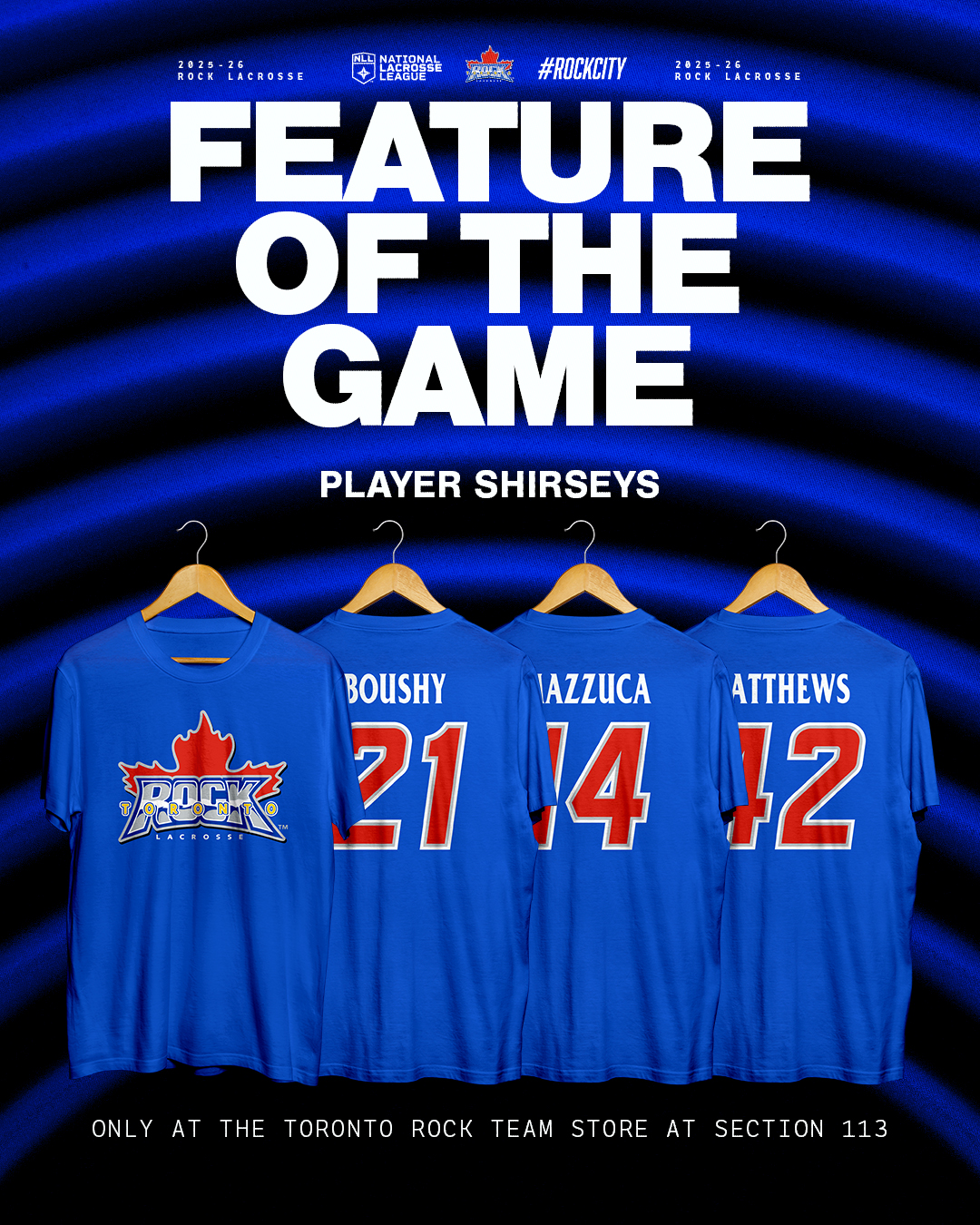 Feature of the Game: Player Shirseys are available at the Toronto Rock Team Store at Section 113.